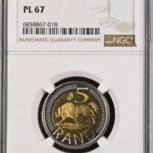 Lot 35: South Africa: Republic R5 “CW Mintmark” of 2004 PL 67 NGC.