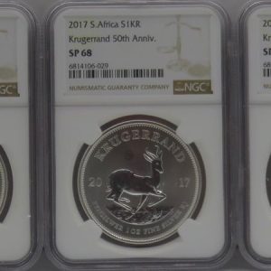 Lot 36: South Africa: Republic Lot of 5 x Silver Krugerrand 1oz “50th Anniversary Privy” of 2017 SP 68 NGC.
