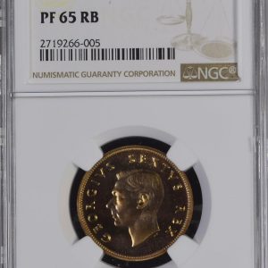 Lot 5: South Africa: Union George VI half penny of 1949 Proof 65 Red & Brown NGC.