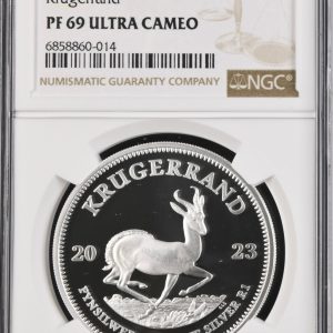 Lot 42: South Africa: Republic Silver Krugerrand 1oz of 2023 Proof 69 NGC.