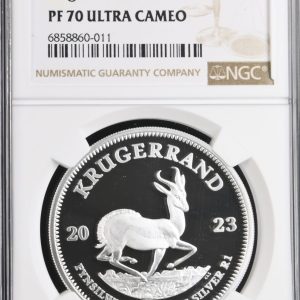 Lot 43: South Africa: Republic Silver Krugerrand 1oz of 2023 Proof 70 NGC.