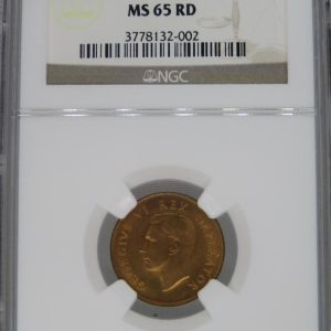 Lot 3: South Africa: Union George VI bronze quarter penny (farthing) of 1942 MS 65 Red NGC.