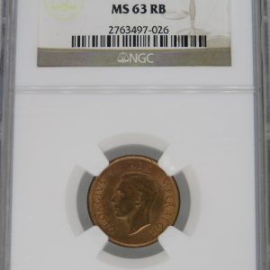Lot 4: South Africa: Union George VI bronze quarter penny (farthing) of 1943 MS 63 Red & Brown NGC.