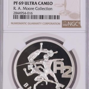Lot 39: South Africa: Republic Silver R2 “Barcelona Olympics” of 1992 Proof 69 NGC.