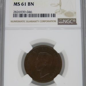 Lot 6: South Africa: Union George VI bronze half penny of 1941 MS 61 Brown NGC.