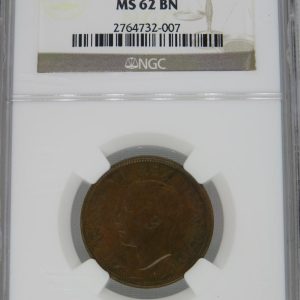 Lot 7: South Africa: Union George VI bronze half penny of 1942 MS 62 Brown NGC.