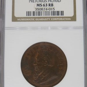 Lot 3: South Africa: Paul Kruger ZAR bronze penny of 1898 MS 63 Red & Brown NGC.