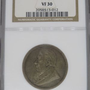 Lot 9: South Africa: Paul Kruger ZAR silver Two Shillings (Florin) of 1893 VF 30 NGC.