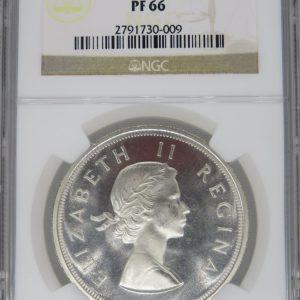 Lot 25: South Africa: Union Elizabeth II silver 5 shillings (crown) of 1953 Proof 66 NGC.