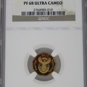 Lot 28: South Africa: Republic bronze plated steel 10 cents of 2010 Proof 68 Ultra Cameo NGC.
