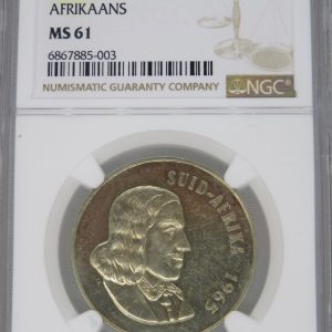 Lot 31: South Africa: Republic Silver R1 “Afrikaans” of 1965 MS 61 NGC.
