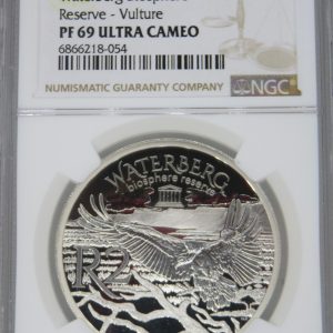 Lot 37: South Africa: Republic Silver R2 “Waterberg Biosphere Reserve – Vulture” of 2018 Proof 69 Ultra Cameo NGC.