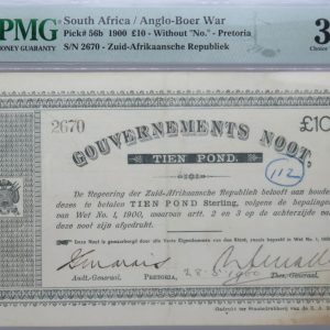 Lot 3: South Africa: Anglo Boer War Issues: ZAR TIEN Pond Gouvernements Noot Pretoria of 1900 PMG Graded Choice Very Fine 35.