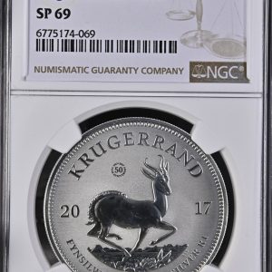Lot 33: South Africa: Republic Silver Krugerrand 1oz Fine Silver “50 Years Anniversary 1967-2017” Mintmark SP 69 NGC.