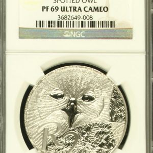 Lot 40: South Africa: Republic Silver R2 “Spotted Owl” of 2004 Proof 69 Ultra Cameo NGC.