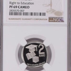 Lot 44: South Africa: Nickel R2 “Right to Education” of 2019 Proof 69 Cameo NGC.