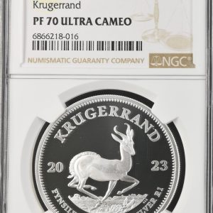 Lot 49: South Africa: Republic Silver Krugerrand 1oz of 2023 Proof 70 Ultra Cameo NGC.