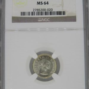 Lot 8: South Africa: Union Elizabeth II silver 3 pence of 1958 MS 64 NGC.