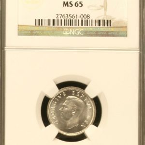 Lot 8: South Africa: Union George V Silver 6 Pence of 1933 MS 64 NGC.