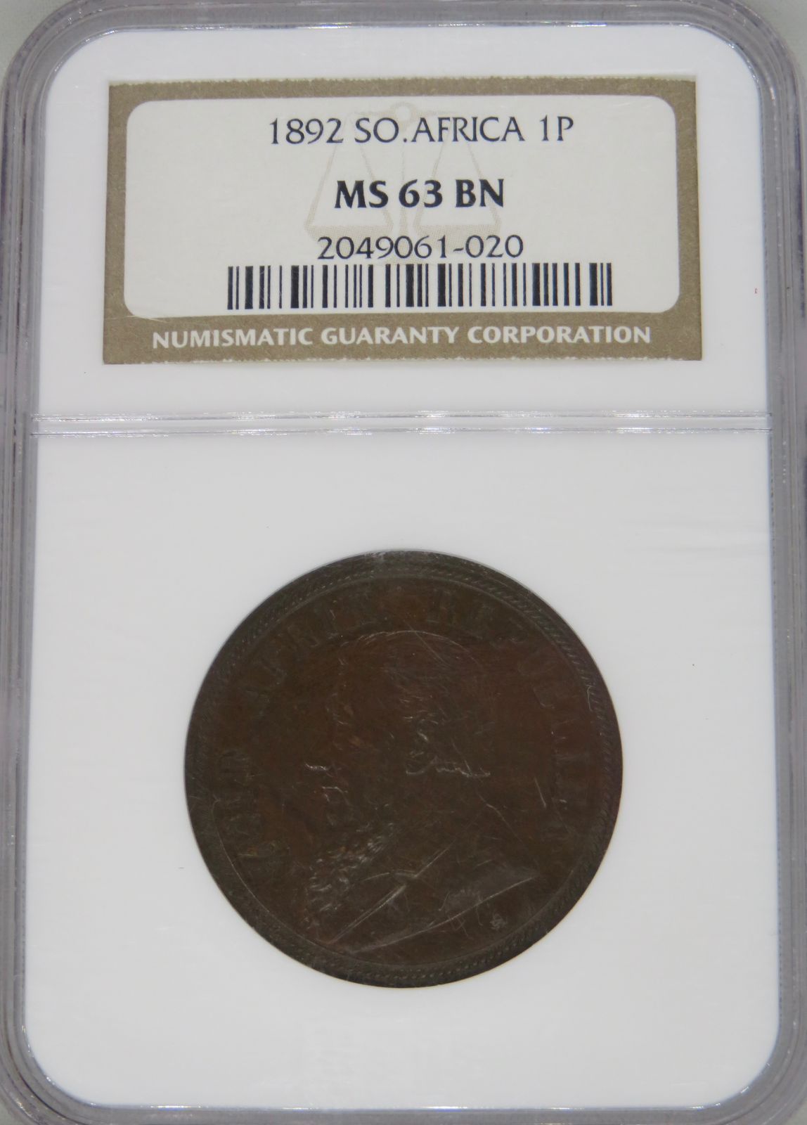 Lot 1: South Africa: ZAR Bronze Penny of 1898 MS 63 Brown NGC.