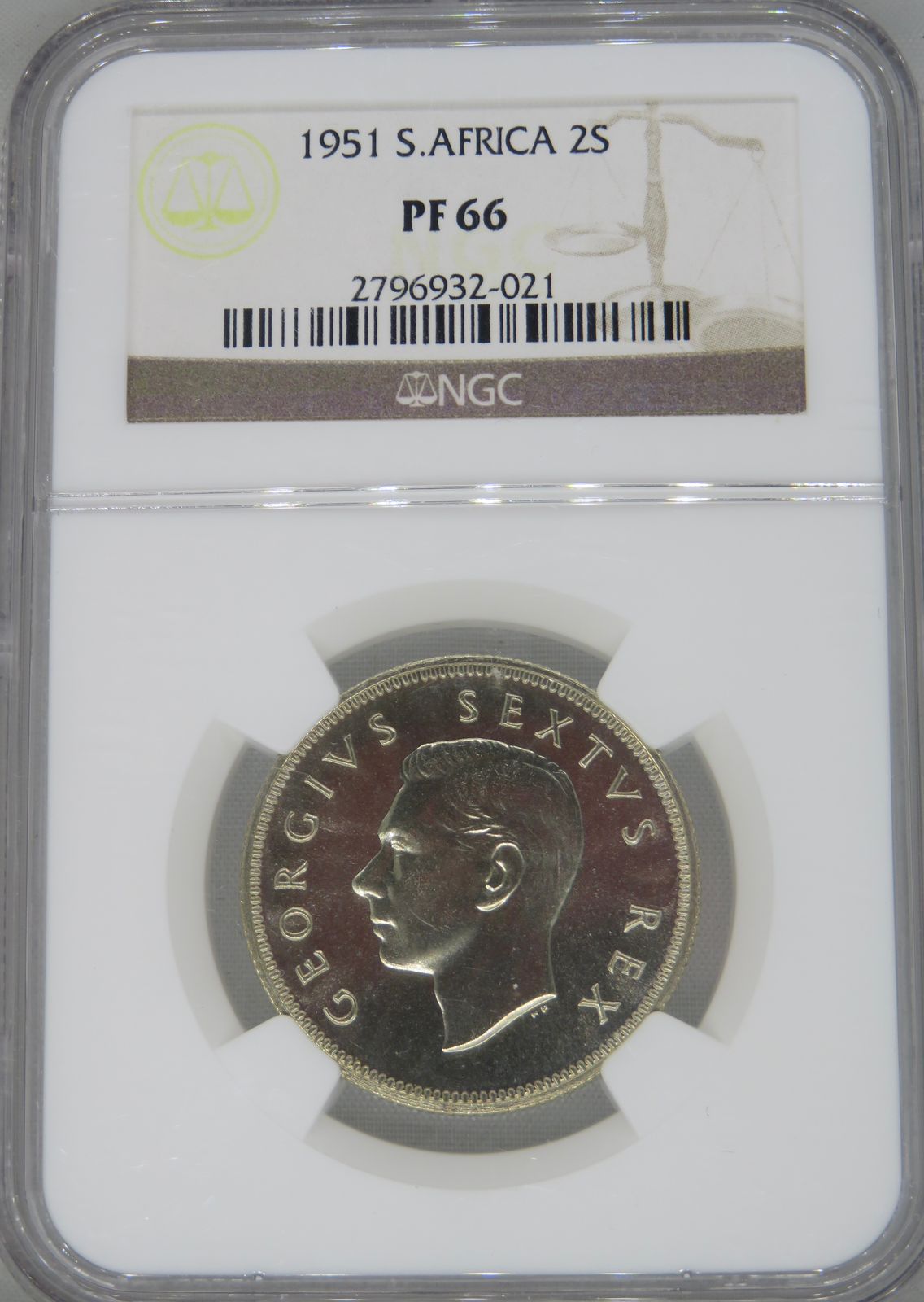 Lot 10: South Africa: Union George VI Silver Two Shillings (Florin) of 1951 Proof 66 NGC.