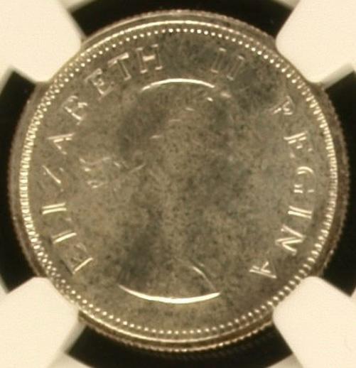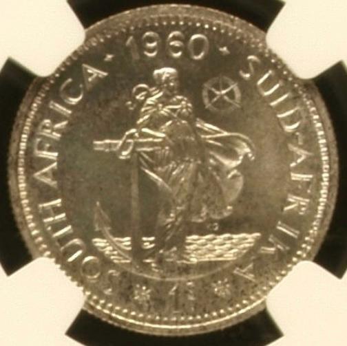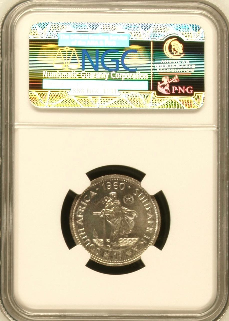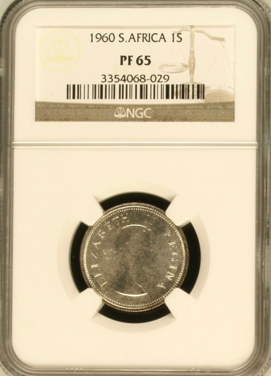Lot 11: South Africa: Union Elizabeth II silver one shilling of 1960 Proof 65 NGC.