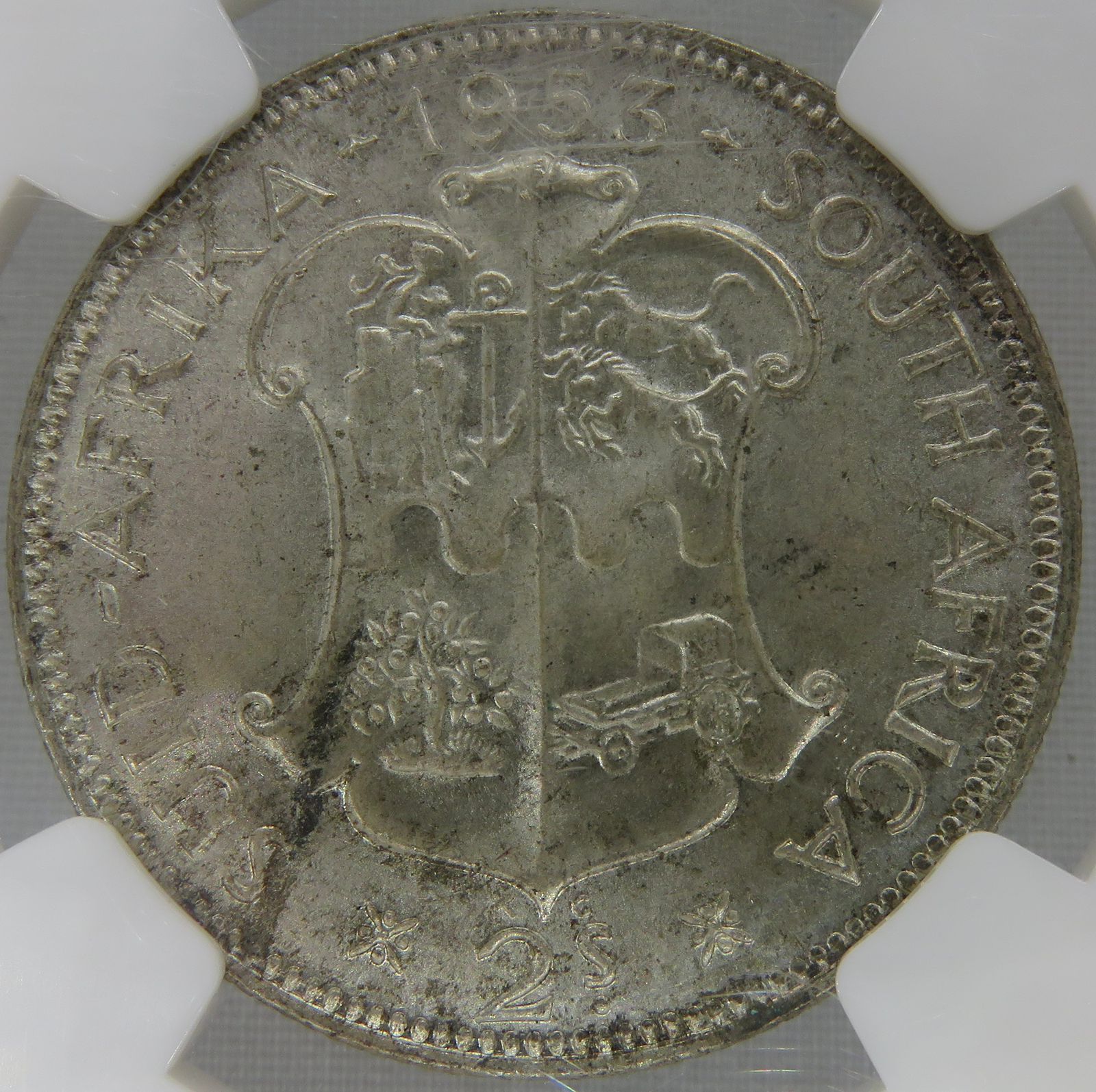 South Africa: Union Elizabeth II Silver Two Shillings (Florin) of 1953 MS 62 NGC.