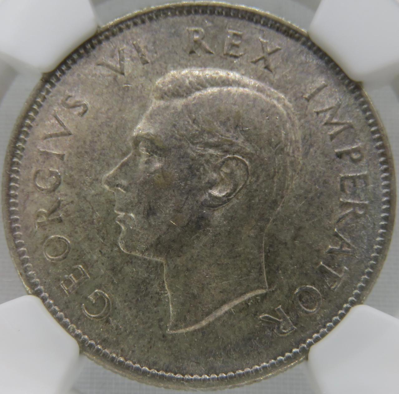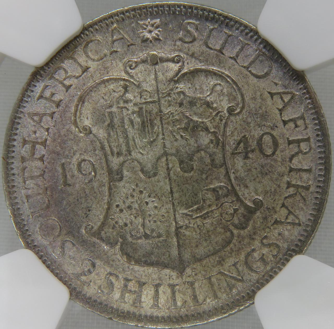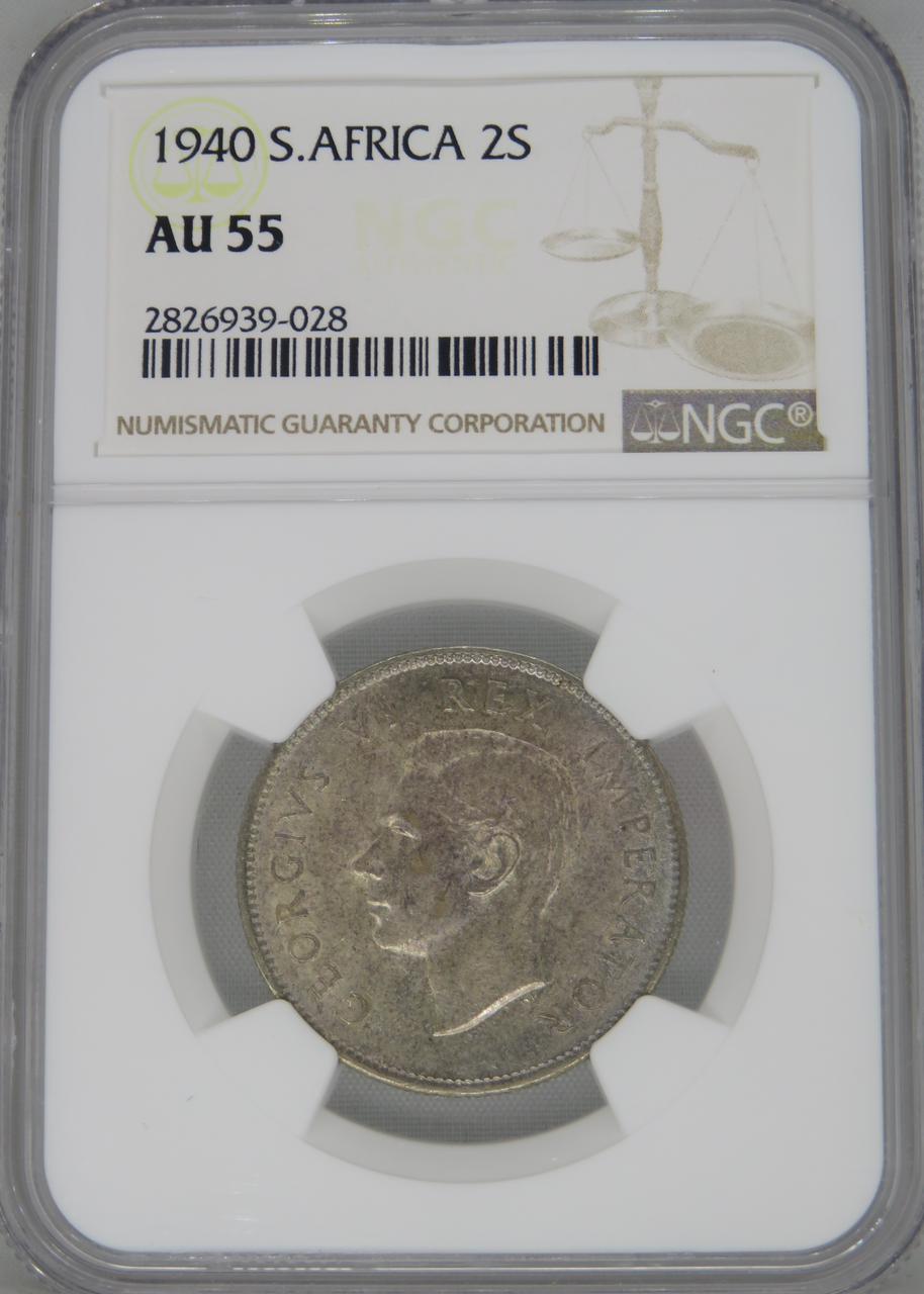 Lot 11: South Africa: Union George VI silver two shillings (florin) of 1940 AU 55 NGC.