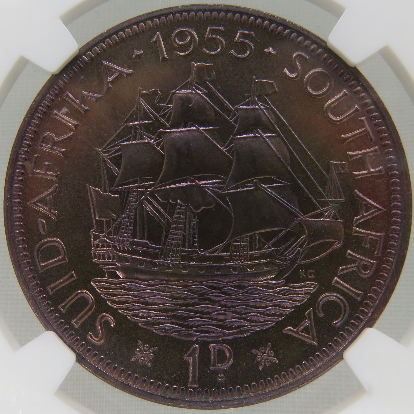 South Africa: Union Elizabeth II bronze Penny of 1955 Proof 65 Red & Brown NGC.