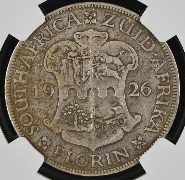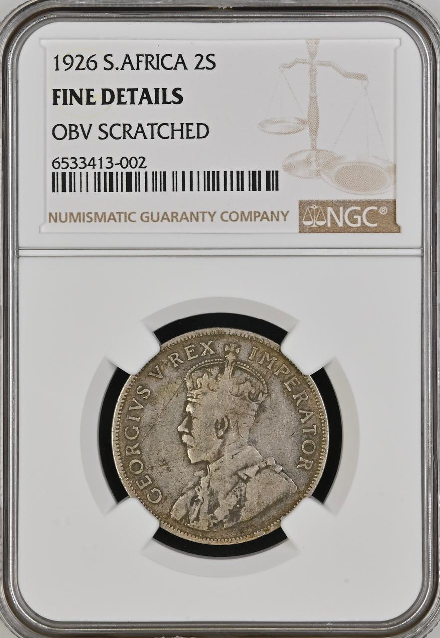 South Africa: Union George V silver two shillings (florin) of 1926 Fine Details NGC.