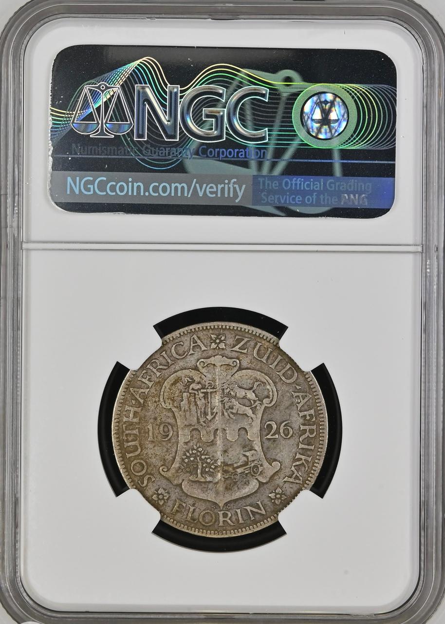 Lot 12: South Africa: Union George V silver two shillings (florin) of 1926 Fine Details NGC.