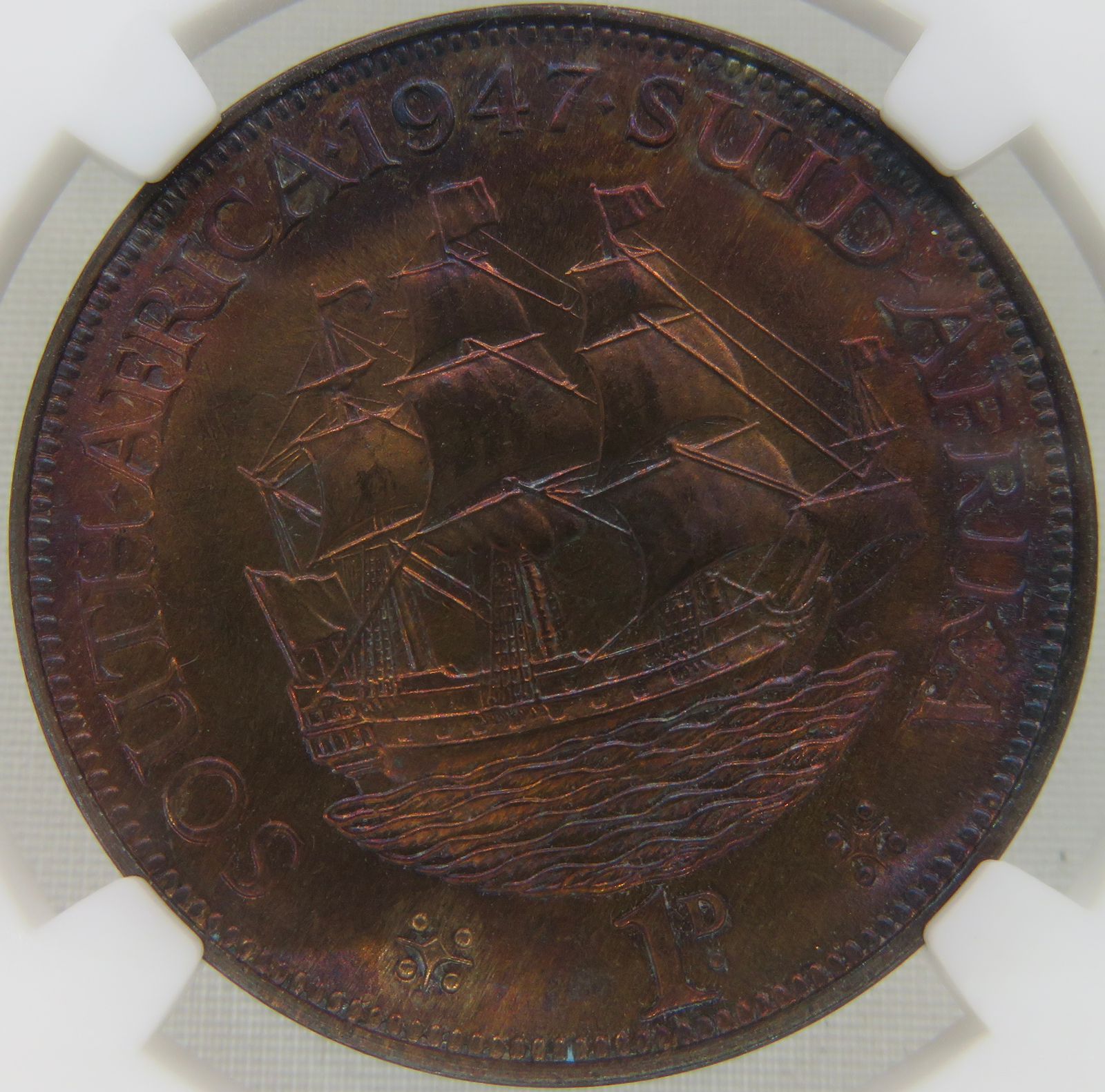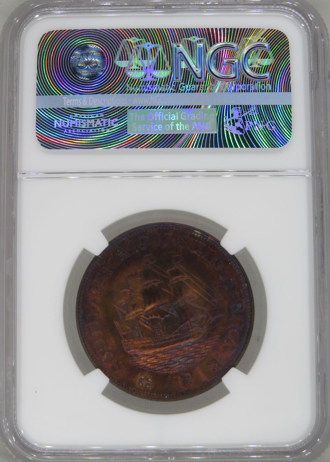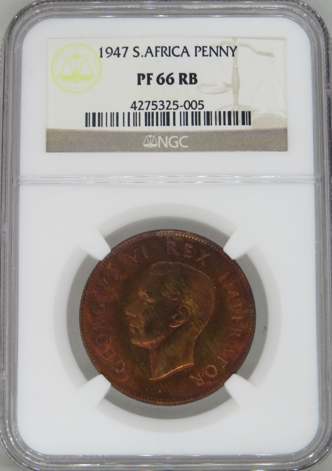South Africa: Union George VI bronze penny of 1947 Proof 66 Red & Brown NGC.