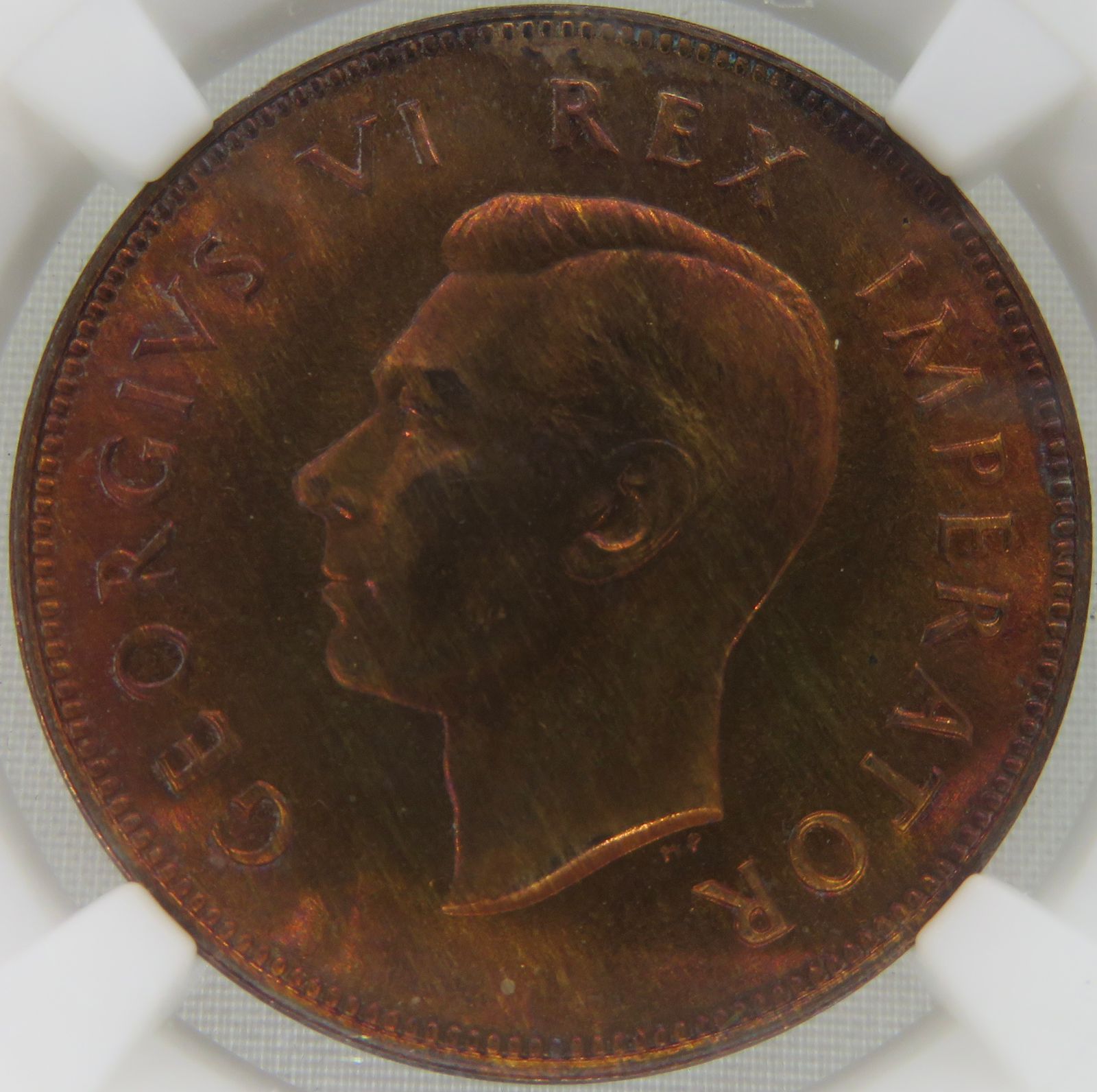 Lot 12: South Africa: Union George VI bronze penny of 1947 Proof 66 Red & Brown NGC.