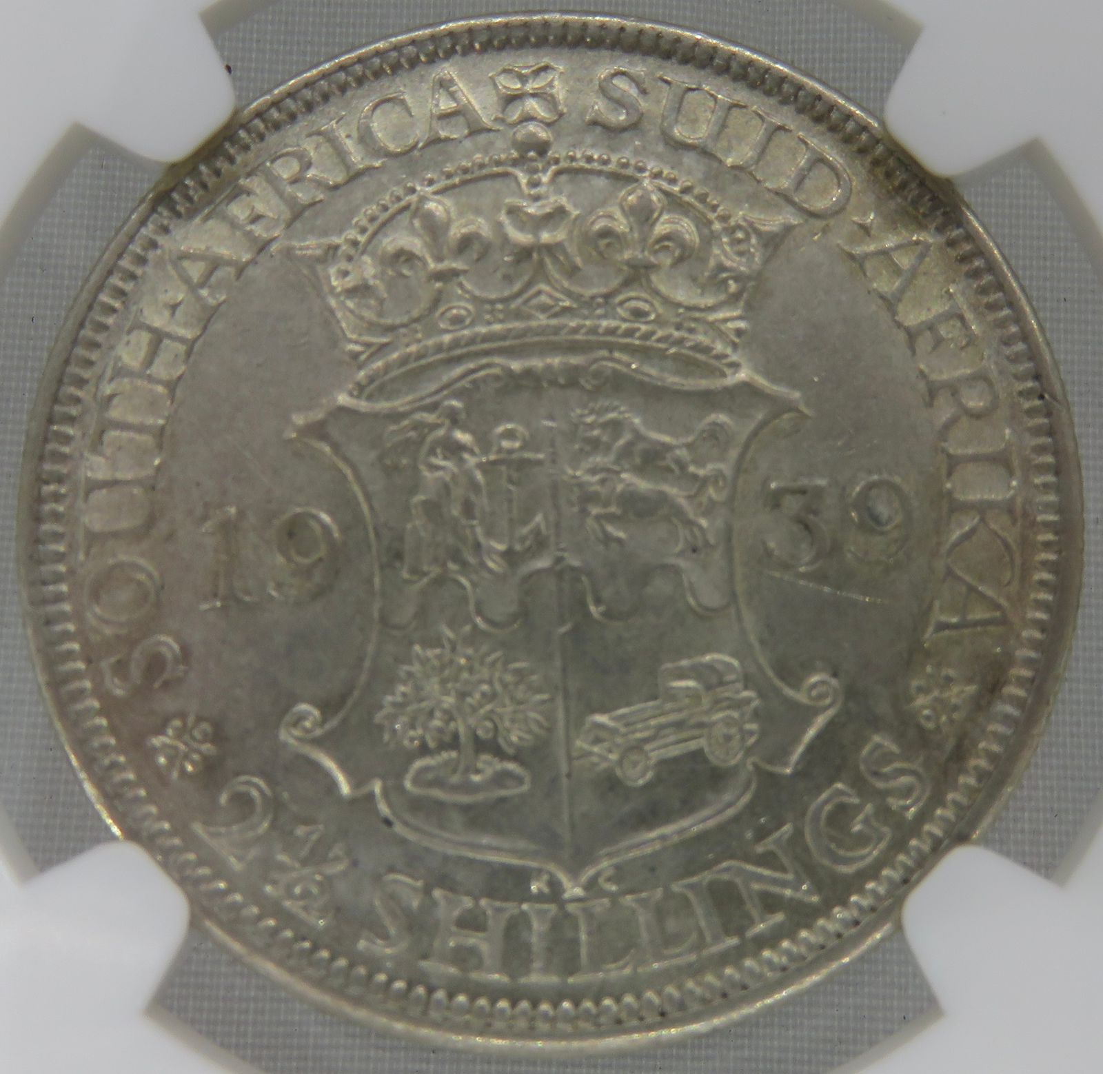 South Africa: Union George VI Silver 2.5 Shillings (Halfcrown) of 1939 AU 53 NGC.