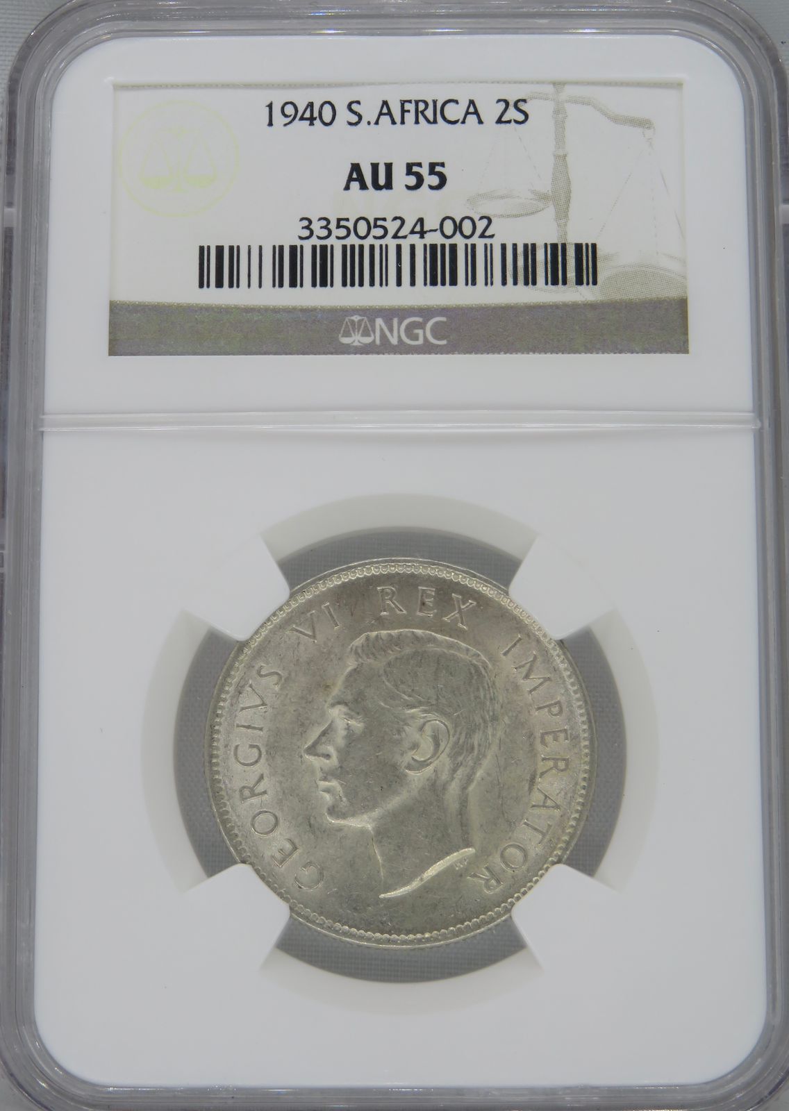 South Africa: Union George VI Silver 2 Shillings (Florin) of 1940 AU 55 NGC.