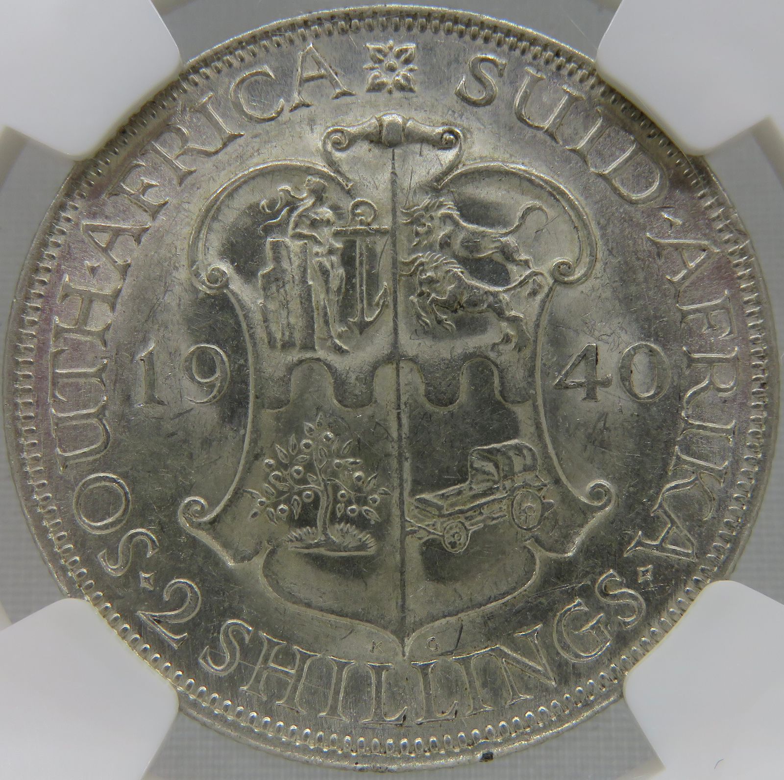 Lot 12: South Africa: Union George VI Silver 2 Shillings (Florin) of 1940 AU 55 NGC.