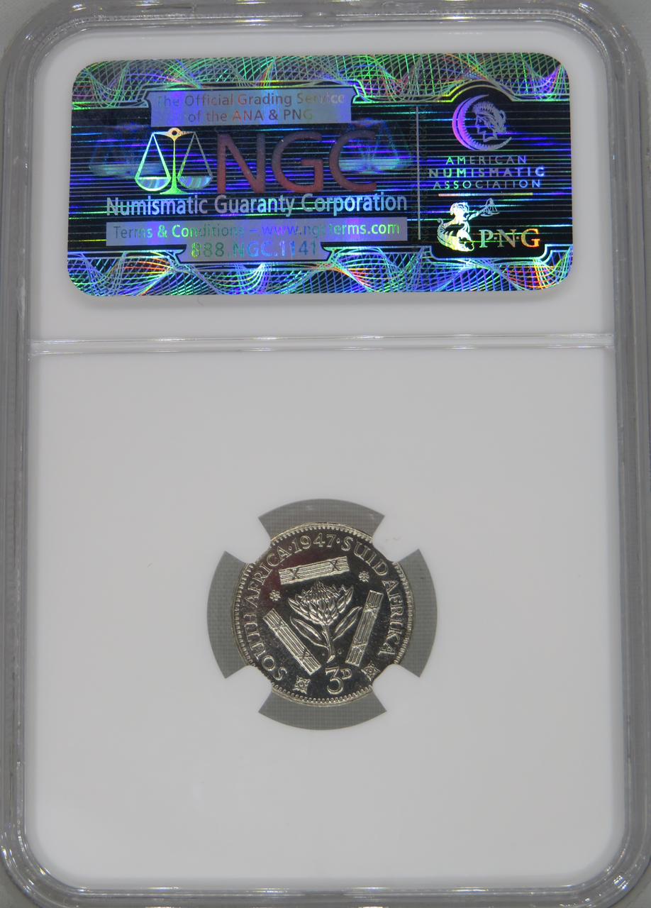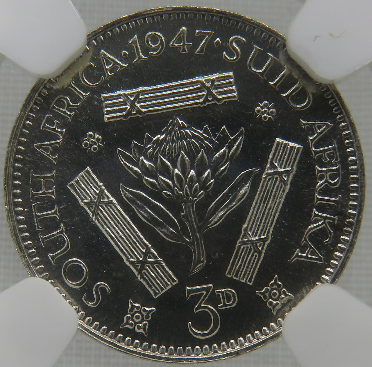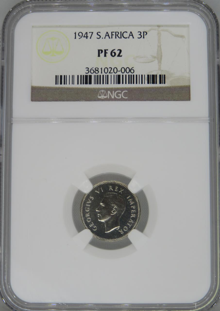 South Africa: Union George VI silver 3 pence of 1947 Proof 62 NGC.
