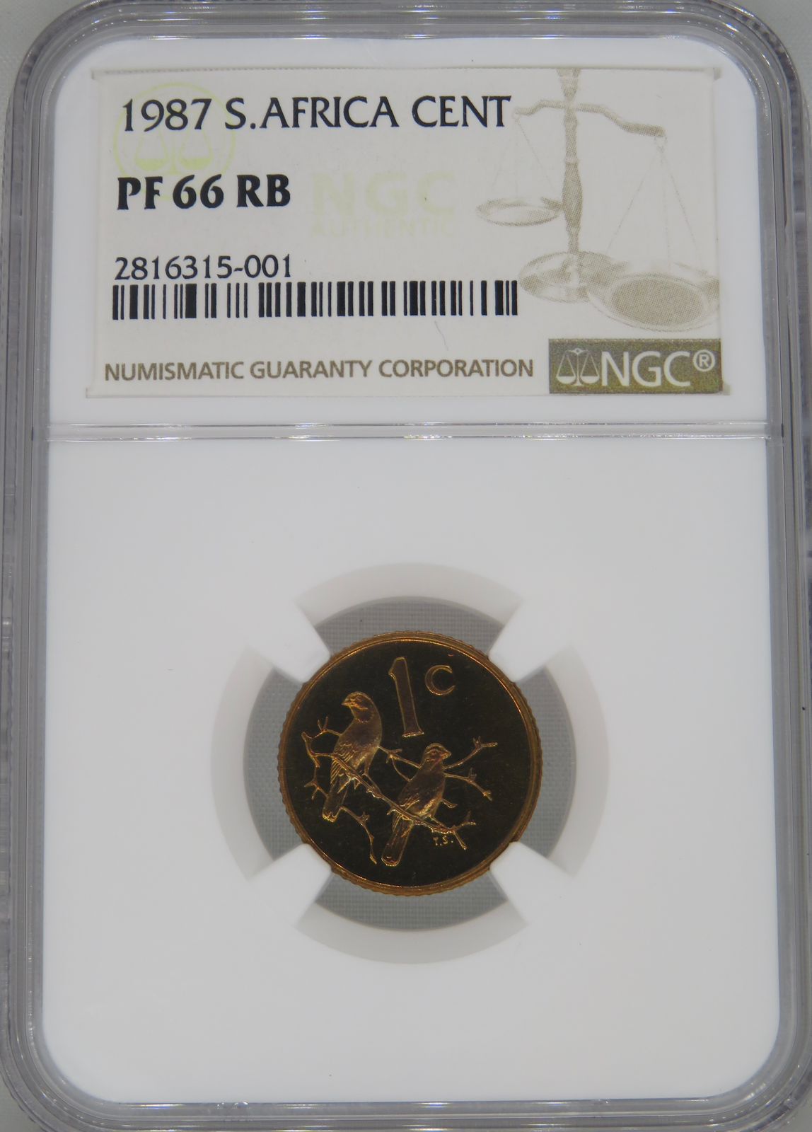 Lot 13: South Africa: Republic bronze Cent of 1987 Proof 66 Red & Brown NGC.