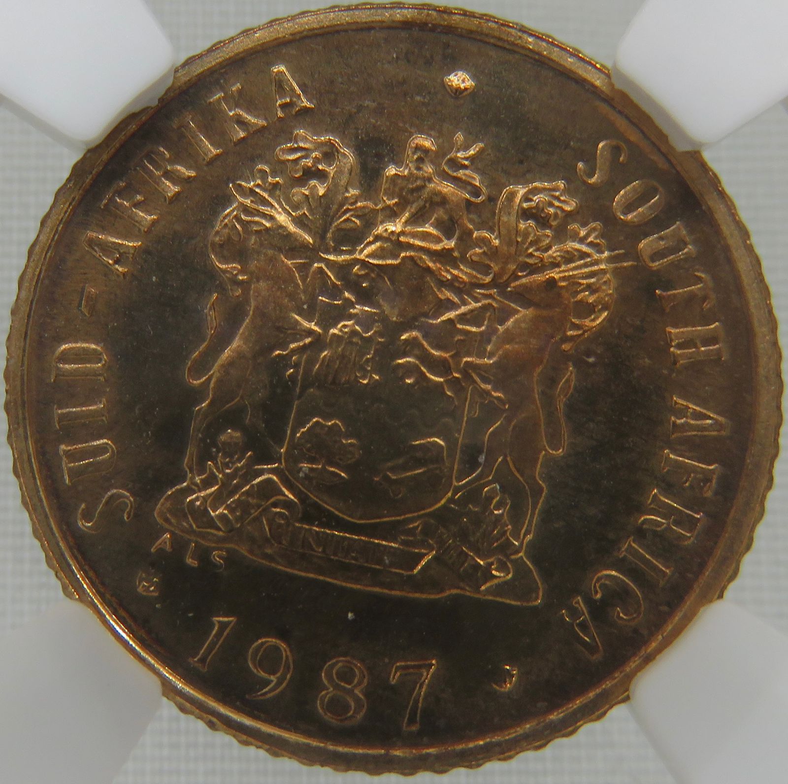 South Africa: Republic bronze Cent of 1987 Proof 66 Red & Brown NGC.
