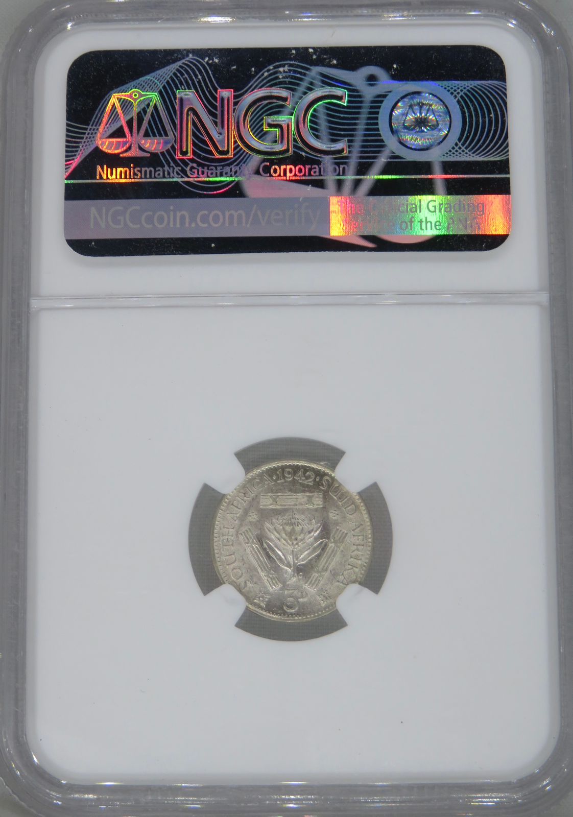 South Africa: Union George VI silver 3 pence of 1942 UNC Details NGC.
