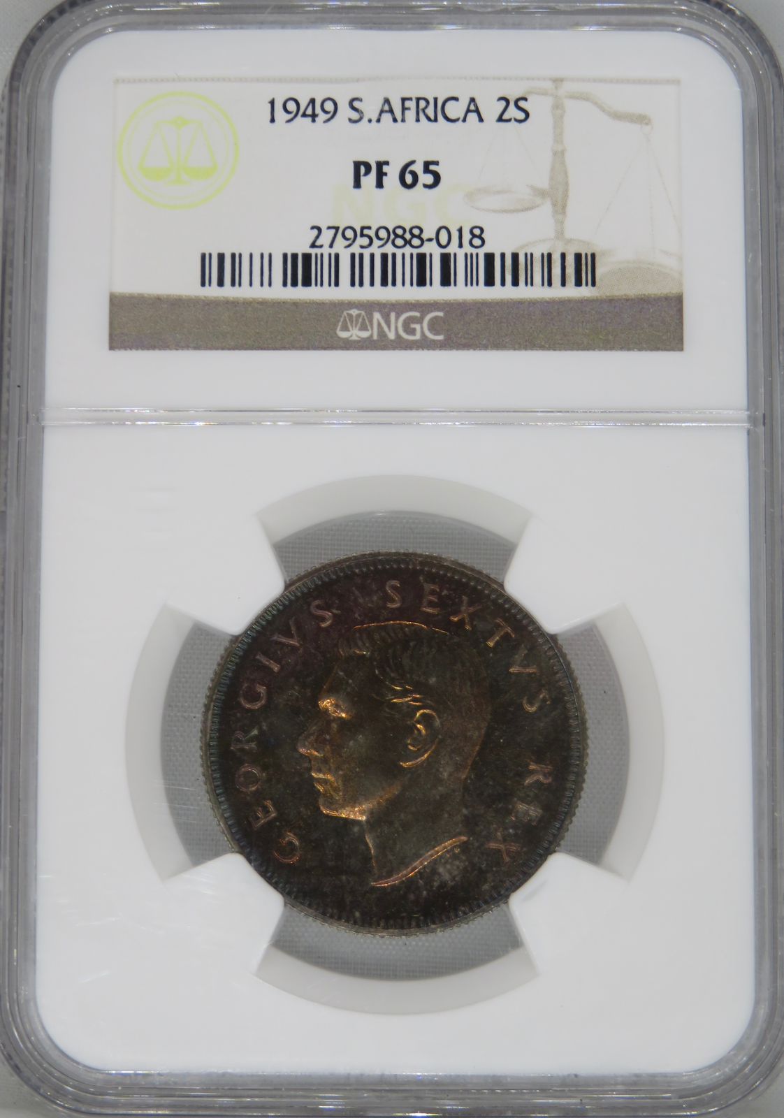 South Africa: Union George VI silver 2 Shillings (Florin) of 1949 Proof 65 NGC.