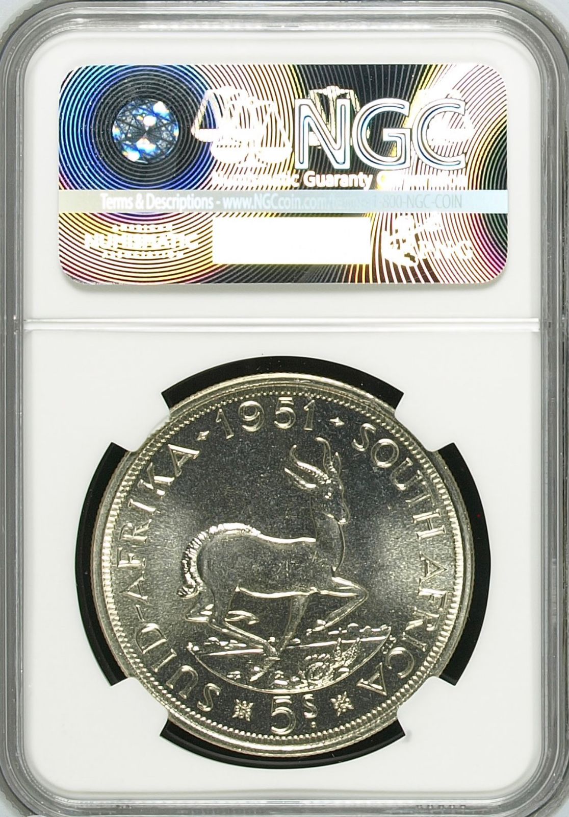 South Africa: Union George VI Silver 5 Shillings (Crown) of 1951 Proof 65 NGC.