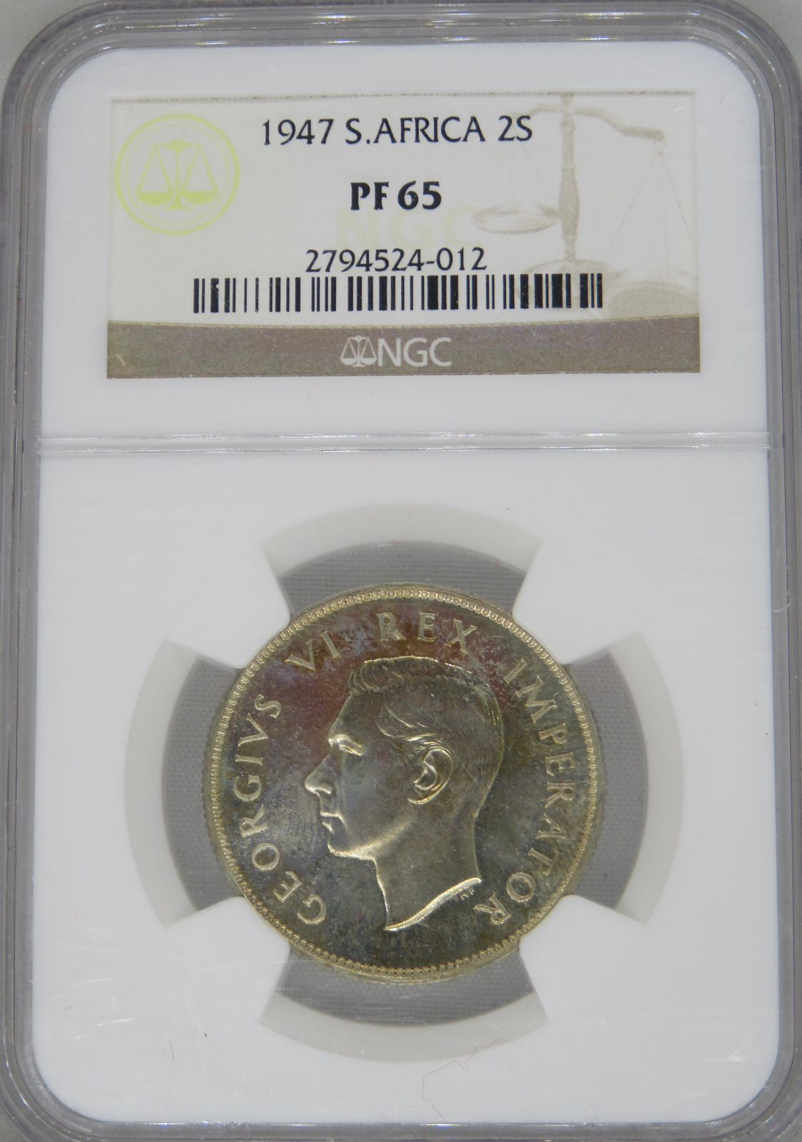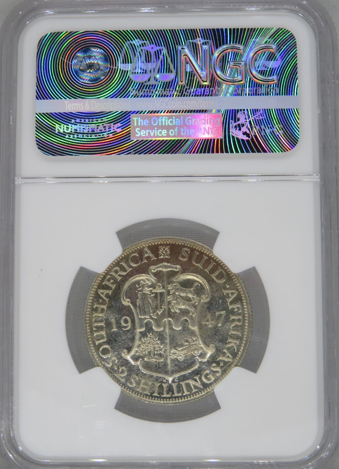 South Africa: Union George VI silver Two Shillings (florin) of 1947 Proof 65 NGC.