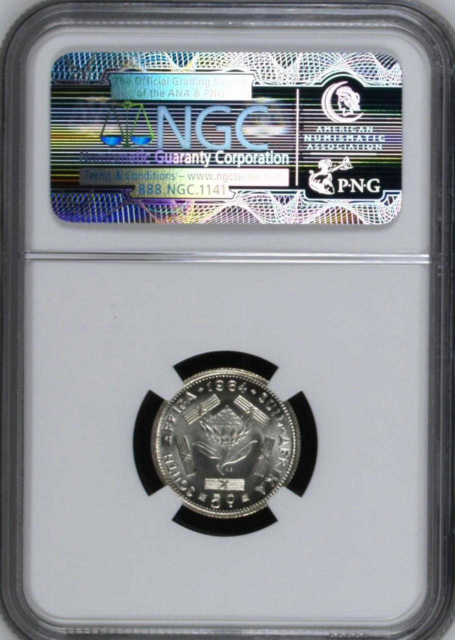 South Africa: Republic Silver 5 Cents of 1964 MS 66 NGC.