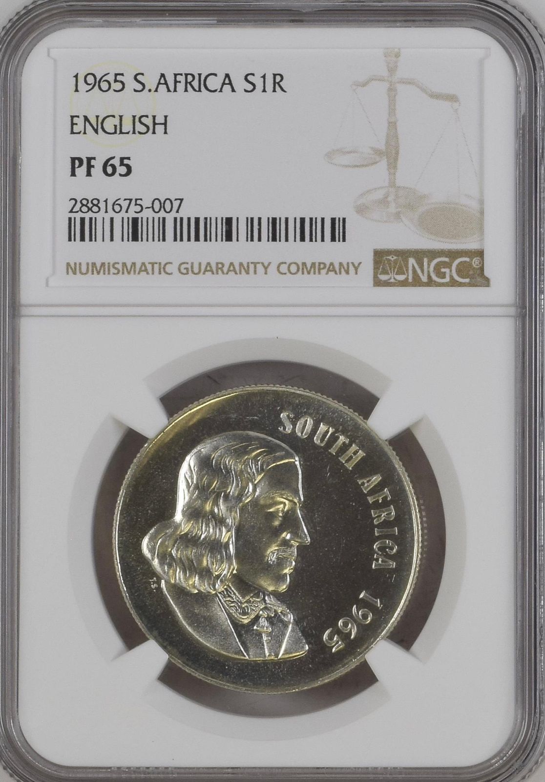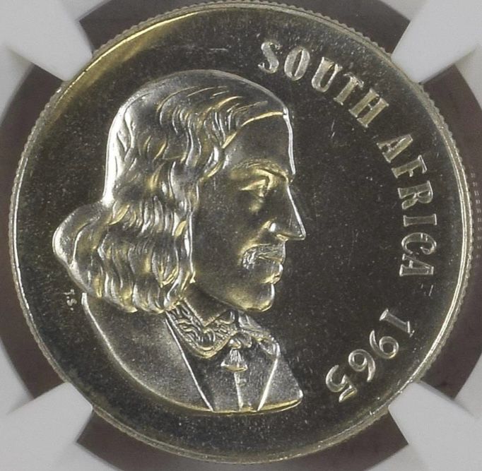 South Africa: Republic Silver R1 “English” of 1965 Proof 65 NGC.