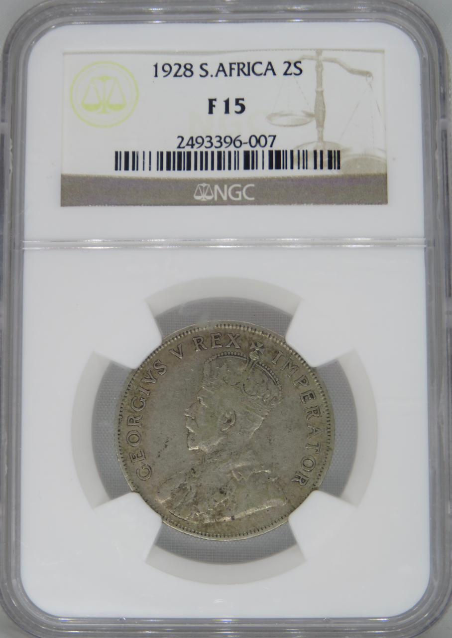 South Africa: Union George V silver two shillings (florin) of 1928 F 15 NGC.