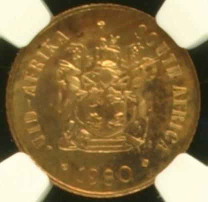 South Africa: Republic bronze cent of 1980 Proof 65 Red & Brown NGC.