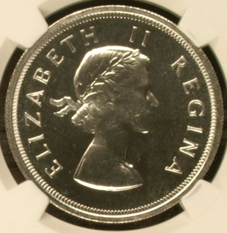 South Africa: Union Elizabeth II Silver 5 Shillings (Crown) of 1957 Proof 65 NGC.