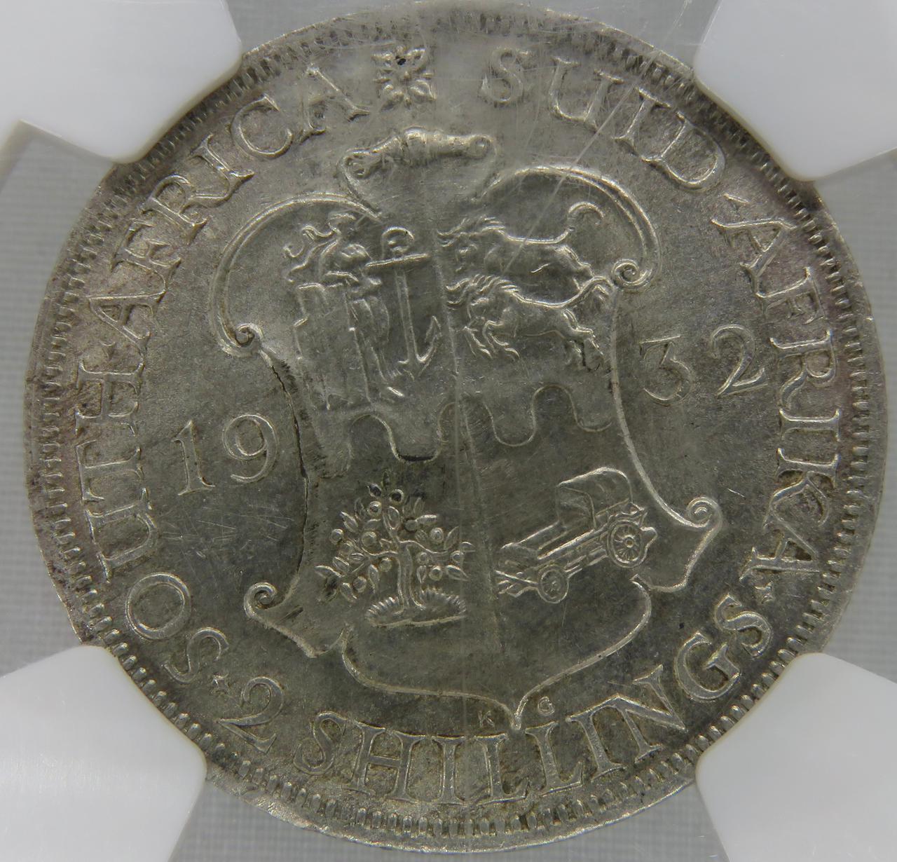 Lot 19: South Africa: Union George V silver two shillings (florin) of 1932 MS 61 NGC.