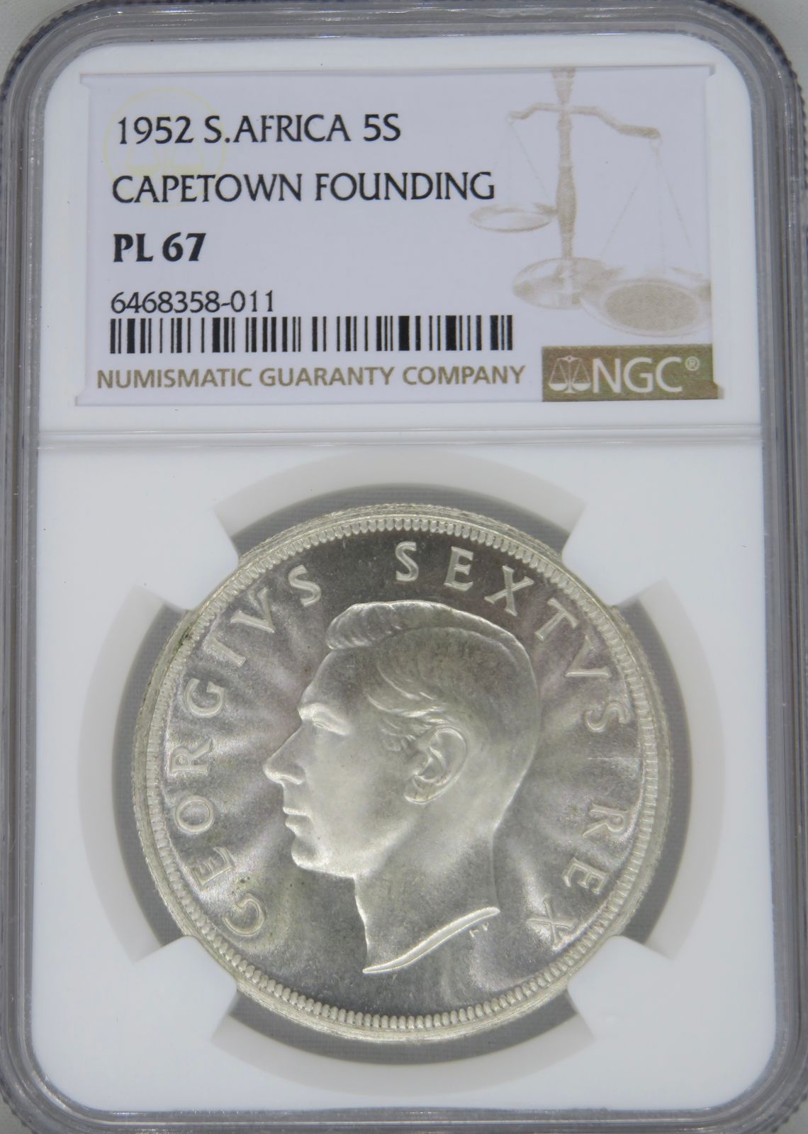 South Africa: Union George VI Silver 5 Shillings (Crown) of 1952 PL 67 NGC.